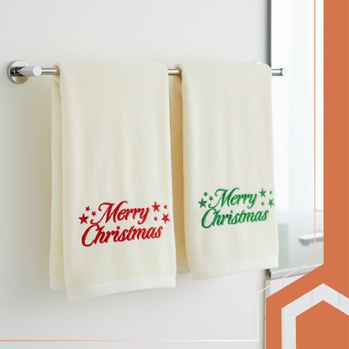 - 2 świąteczne ręczniki - Białe z wyhaftowanym napisem " Merry Christmas"