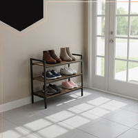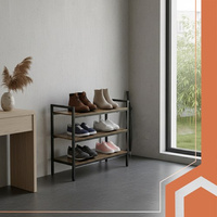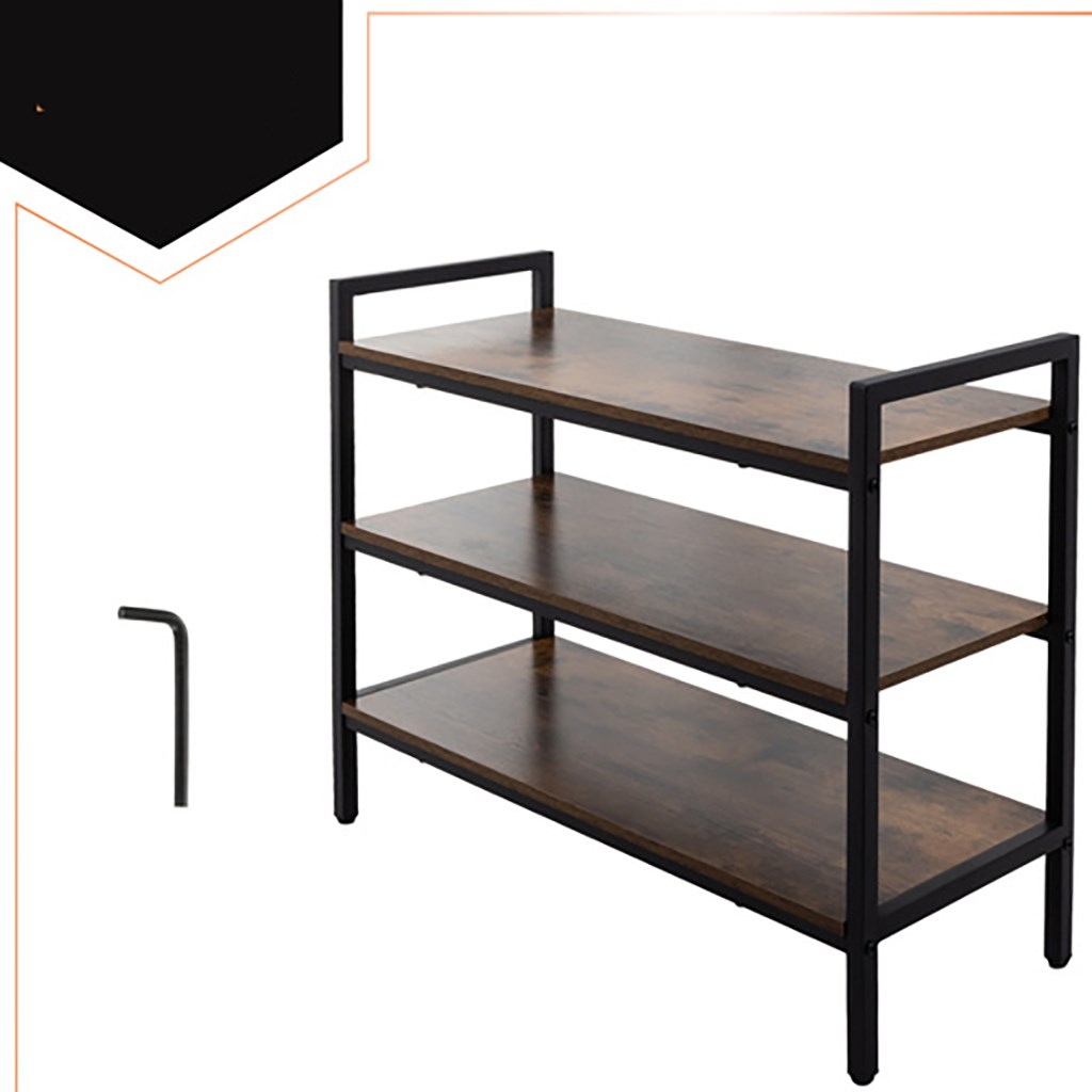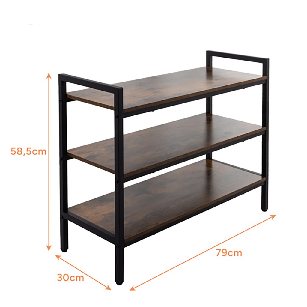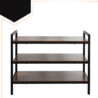 Regał na buty 3-poziomowy - metalowy organizer z drewnianymi półkami - stabilny stojak na obuwie i akcesoria - nowoczesny design loft - udźwig 30 kg na półkę