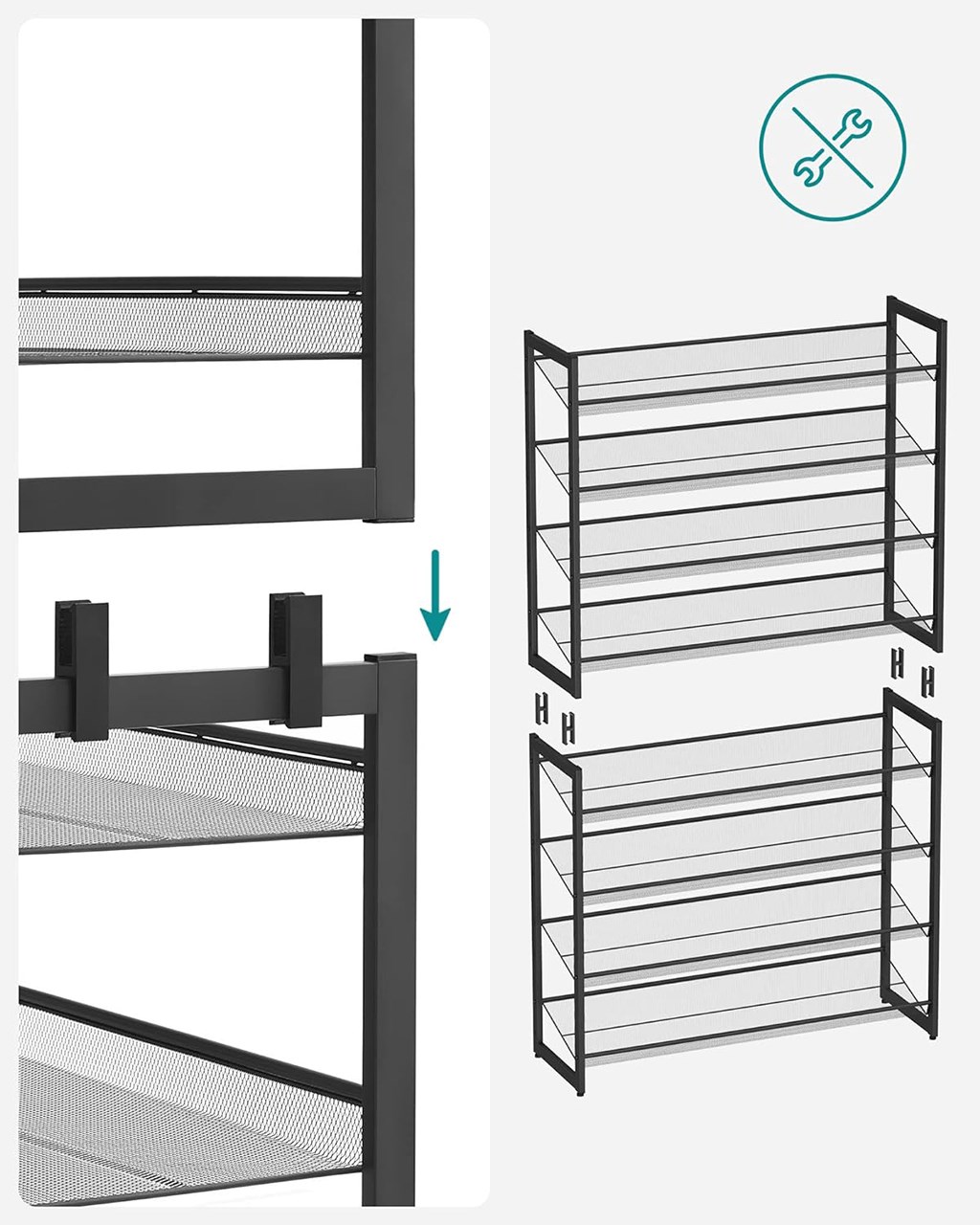 Półki w formie siatek sprawiają, że są one jeszcze bardziej funkcjonalne, gdyż możemy wykorzystać je nie tylko na obuwie dla dorosłych ale również na obuwie dziecięce, nawet te najmniejsze.