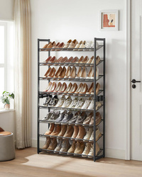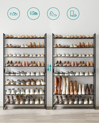 Szafka posiada osiem półek na buty (2 połączone ze sobą regały z 4 półkami), które w zależności od wielkości obuwia mogą pomieścić ich do 40 par.