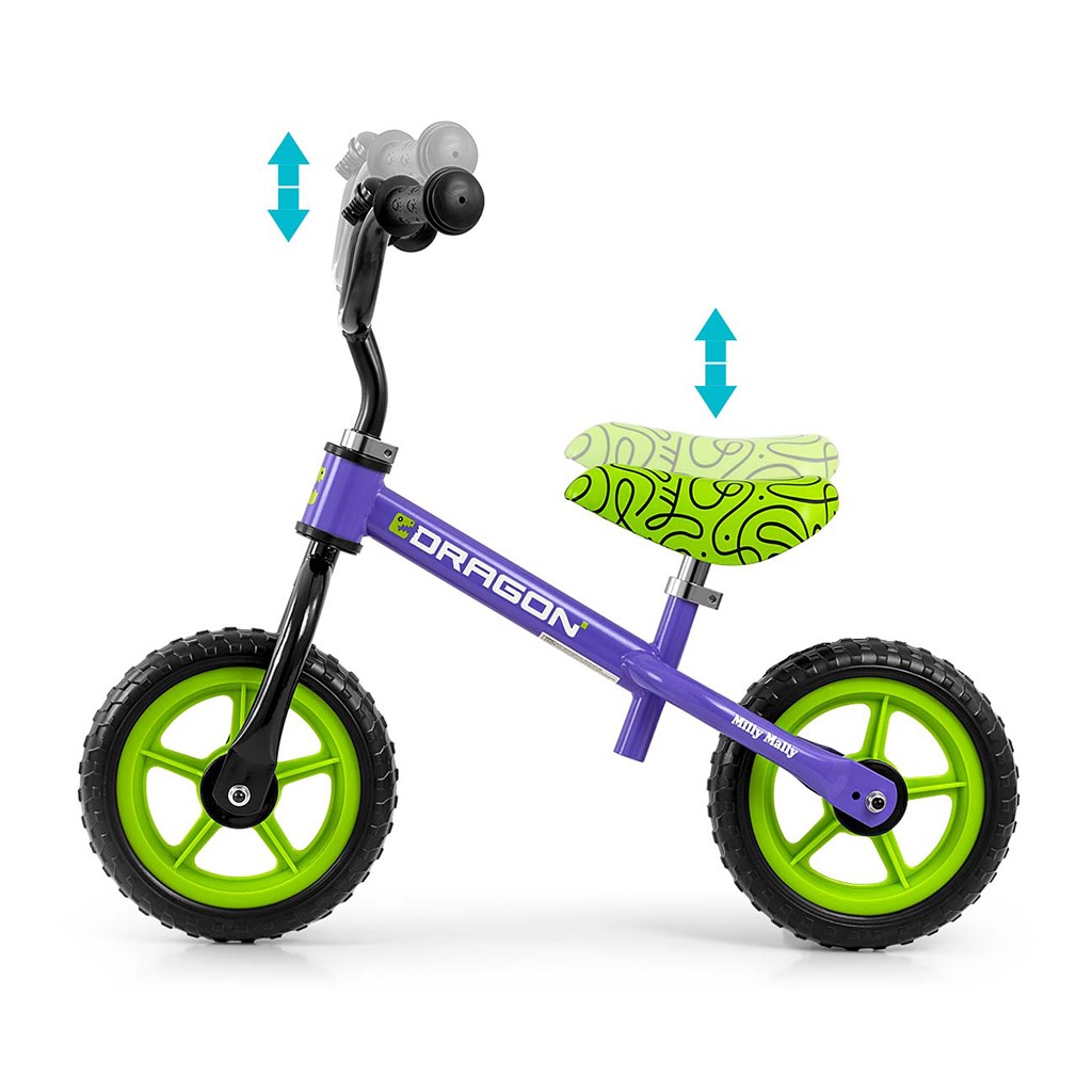 Rowerek biegowy DRAGON jest idealnym rozwiązaniem dla dzieci, które dopiero rozpoczynają naukę jazdy na rowerku biegowym. Rowerek ten pozbawiony jest pedałów, co pozwala skupić się dziecku na nauce utrzymywania równowagi i kierunku jazdy.