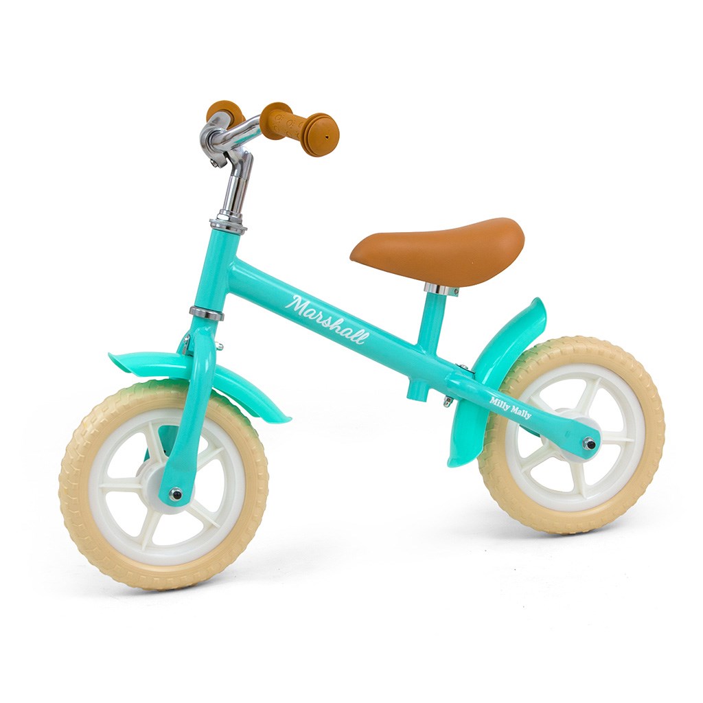 Wytrzymałe opony na białych felgach, z pianki EVA są wytrzymałe i nie wymagają pompowania. Ergonomiczne siodełko z miękkim wypełnieniem oraz możliwością regulacji wysokości sprawia, że rowerek rośnie razem z dzieckiem. Marshall posiada łożyskowaną skrętną kierownicę z możliwością regulacji wysokości. Antypoślizgowe, miękkie gumowe rączki zapewniają pewny chwyt i wygodne prowadzenie. Klasyczna i ergonomiczna konstrukcja rowerka zapewnia trwałość i wygodę użytkowania. Stalowa rama rowerka zapewnia większą odporność na przeciążenia. Rowerek dostosowany do długotrwałej eksploatacji przez najmłodszych.