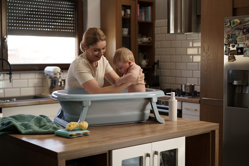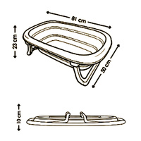 Wanienka wyposażona jest w korek odpływowy oraz paskowy termometr, co znacząco zwiększa komfort i bezpieczeństwo codziennego użytkowania. Można ją łatwo złożyć do wysokości zaledwie 10 cm, a plastikowe nóżki chowają się bezpośrednio pod wanienkę – dzięki czemu zajmuje minimalną ilość miejsca i jest idealna do przechowywania nawet w mniejszych przestrzeniach.