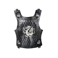 Chwyć miecz, załóż tarczę i hełm i ruszaj do rycerskiej walki! Zestaw zawiera srebrny miecz, tarczę ochronną ze smoczym herbem, hełm z osłoną i kamizelkę rycerską. Wszystkie elementy są wykonane z PVC. Miecz ma ok. 49 cm długości.