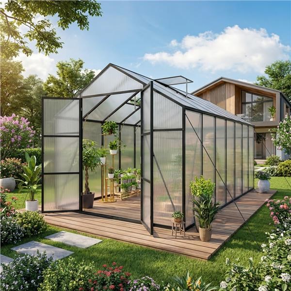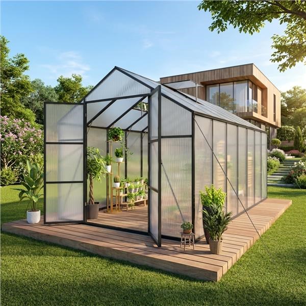 Szklarnia ogrodowa z poliwęglanem i aluminiową konstrukcją – idealna do uprawy przez cały rok