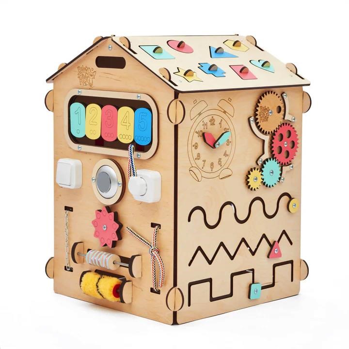 Ściany są wyposażone w zamki błyskawiczne, budzik, lampkę dotykową, rzepy, elementy motoryczne i przyciski.