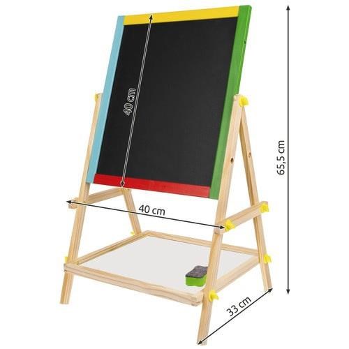 dwustronna - dwie różne powierzchnie użytkowe: czarną stronę kredową do rysowania kredą oraz białą stronę suchościeralną, idealną do pisania markerami, dzieci mogą korzystać z różnorodnych technik twórczych, rozwijając swoją kreatywność i umiejętności w zabawie i nauce