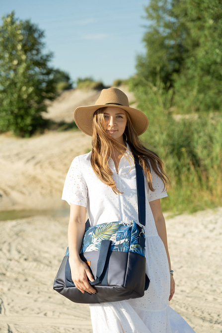 Torba z ekoskórą jest idealna nie tylko do wózka. Posiada wiele zalet takich jak: spód z ekoskóry, wewnętrzne kieszenie, funkcjonalne przegródki i odporną na zabrudzenia podszewkę. Natomiast kolorowa bawełna z nadrukiem sprawia, że torba pasuje do nowoczesnych wózków. Oprócz tego, torba wyposażona jest w metalowe okucia, uniwersalne zaczepy do powieszenia na ramie oraz praktyczny pasek naramienny. Będzie dostępna w 5 wzorach.