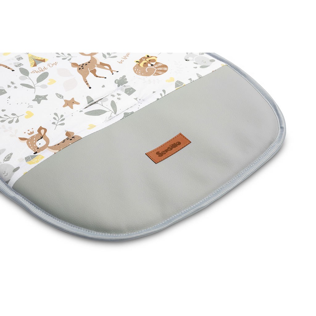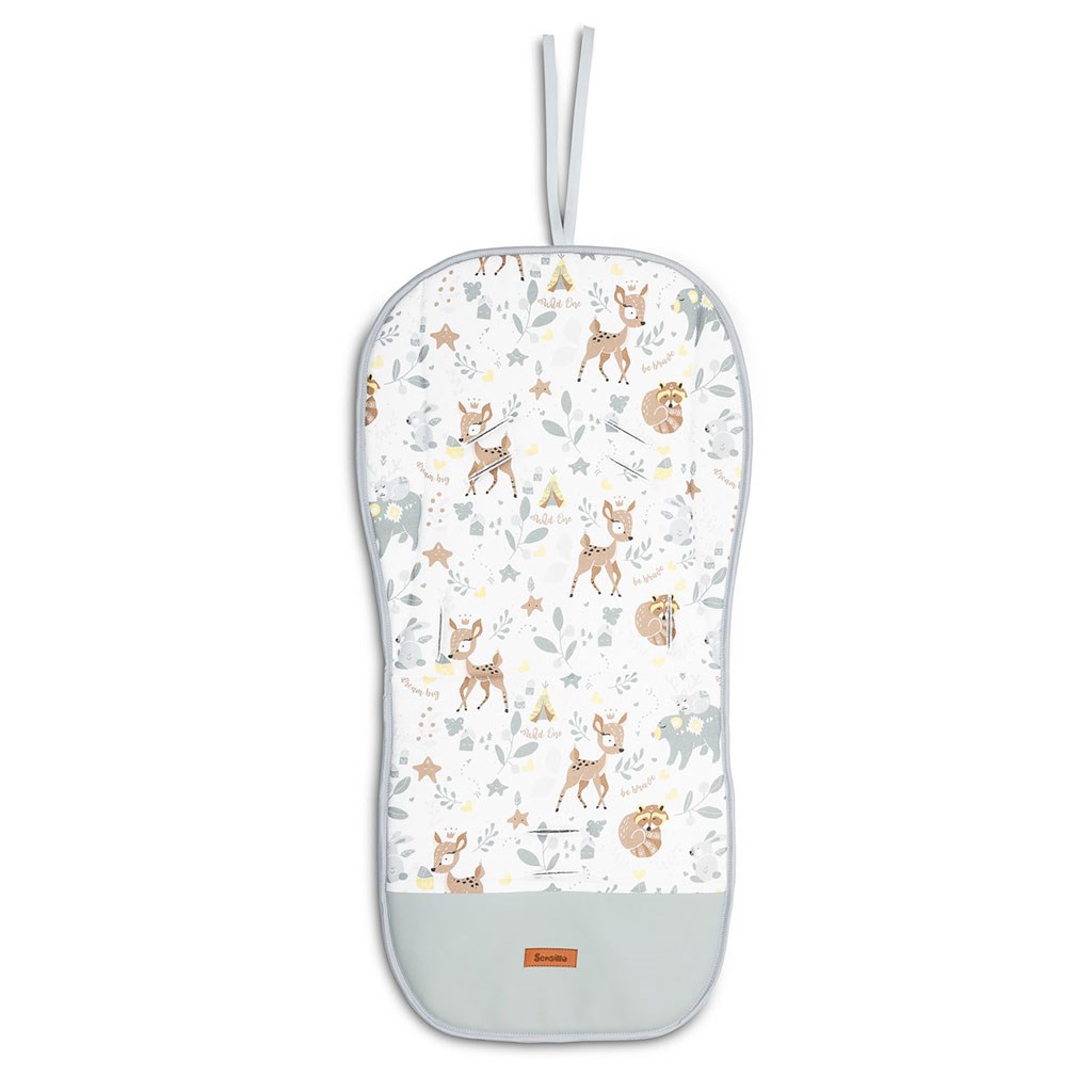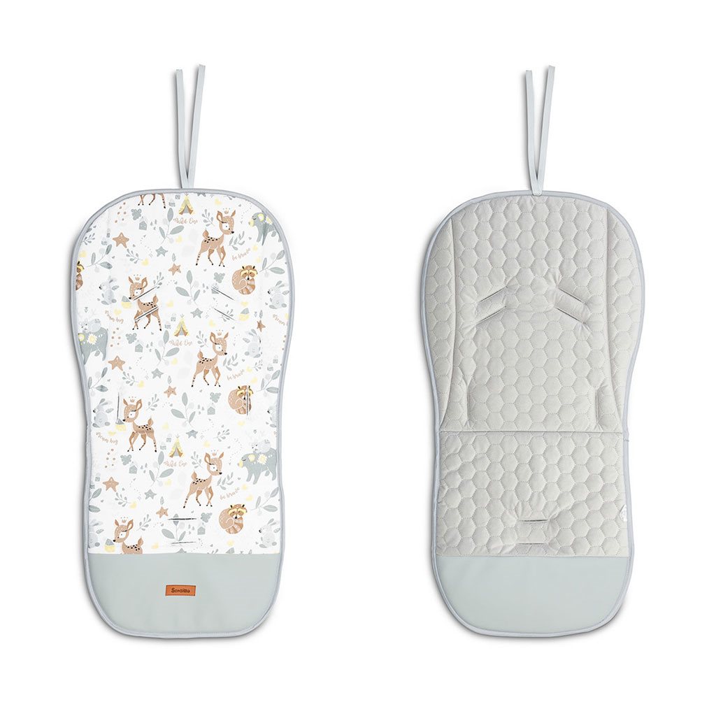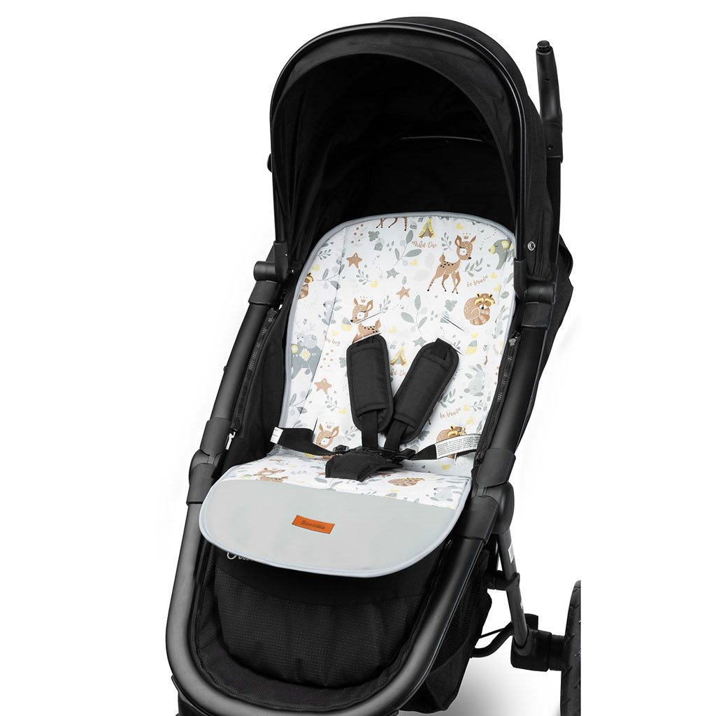 Dzięki uniwersalnej wkładce do wózka z wodoodpornym podnóżkiem, każdy może zmienić wygląd swojego wózka spacerowego. Wkładka pomaga utrzymać wnętrze wózka w czystości oraz podnosi komfort podróżowania. Dodatkowo posiada otwory na pasy bezpieczeństwa oraz wstążkę, do której przywiązać można poduszkę do kompletu