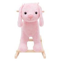 Stabilne drewniane płozy i uchwyty do trzymania gwarantują bezpieczne bujanie, a funkcja melodii aktywowana przyciskiem rozwija zmysł słuchu i sprawia dzieciom mnóstwo radości. Królik posiada wygodne siedzisko bez oparcia – idealny dla nieco starszych maluchów, którzy potrafią samodzielnie utrzymać równowagę.