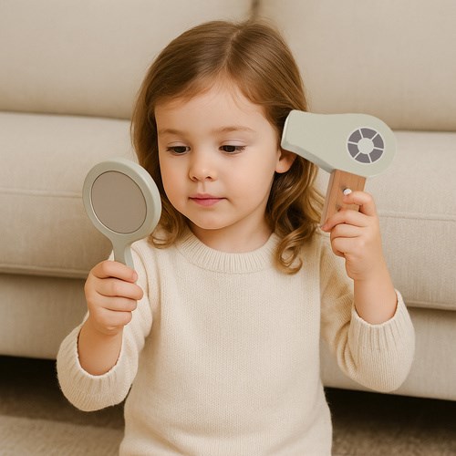 - Nauka przez odgrywanie ról - zabawa w stylistkę, fryzjera czy wizażystkę buduje pewność siebie, empatię i umiejętność współpracy, rozwijając kompetencje społeczne dziecka.