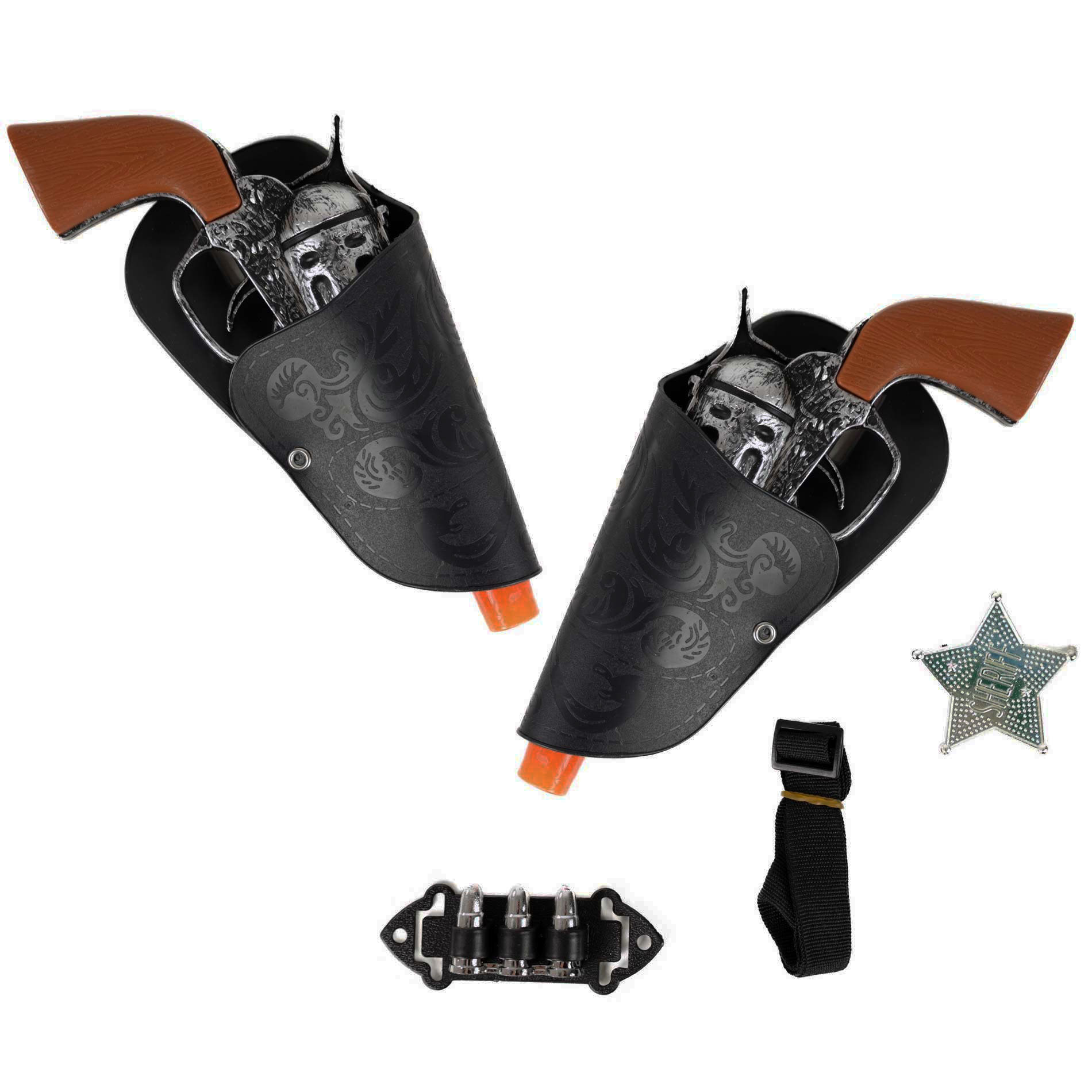 Stylowy zestaw kowbojski! Ten niesamowity zestaw zawiera 2 pistolety w kowbojskich kaburach, odznakę i pas.