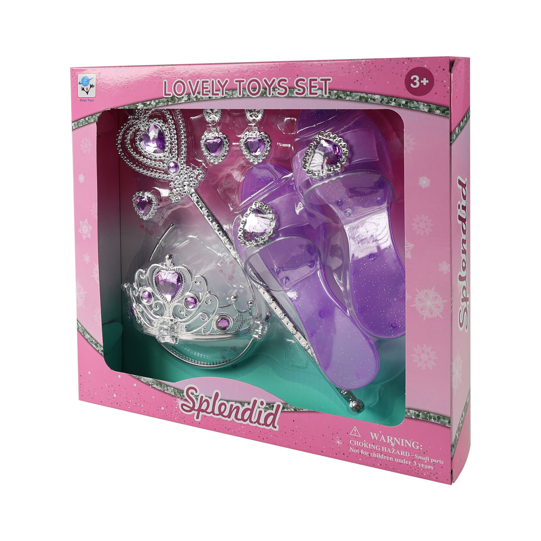Zamień się w prawdziwą księżniczkę! Ten piękny zestaw zawiera wszystko, czego mała księżniczka potrzebuje do swoich bajkowych przygód. Eleganckie warkocze, korona, kolczyki, pierścionek i magiczna różdżka. Dzięki połączeniu srebrnego i fioletowego koloru, cały zestaw wygląda bardzo świątecznie i uroczo. Nadaje się nie tylko do zabawy w domu, ale także na karnawały, przyjęcia urodzinowe lub imprezy dla dzieci.
