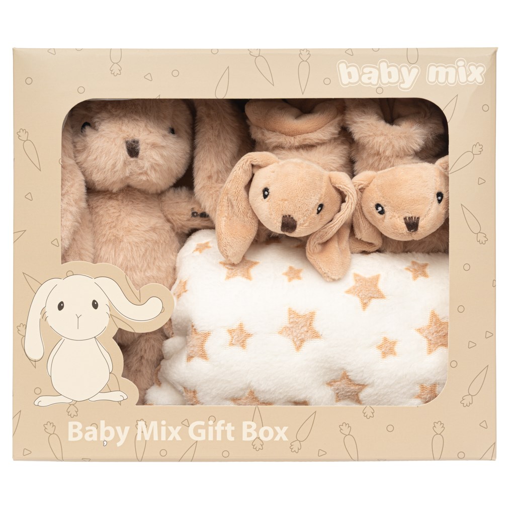 Zestaw upominkowy Baby Mix – brązowy króliczek z bucikami i kocykiem